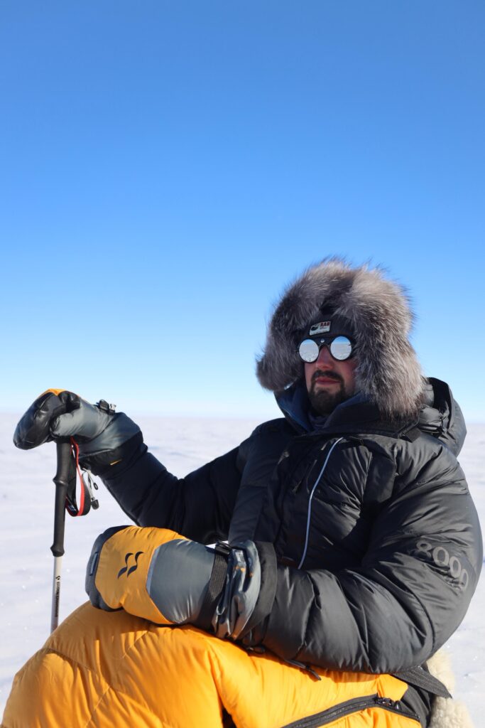Throughout the expedition, the team endured temperatures approaching –45°C, navigating a relentless landscape of steep inclines, hostile terrain, and the constant risk of frostbite and hypothermia. Midway through the journey, Darren was diagnosed with a urinary tract infection – an ever-present and potentially serious risk for someone living with a spinal cord injury. Undeterred, the team pressed on, navigating by compass across a featureless horizon and battling vast fields of sastrugi – irregular, wind-carved ridges that reduced progress to just 10 kilometres per day.