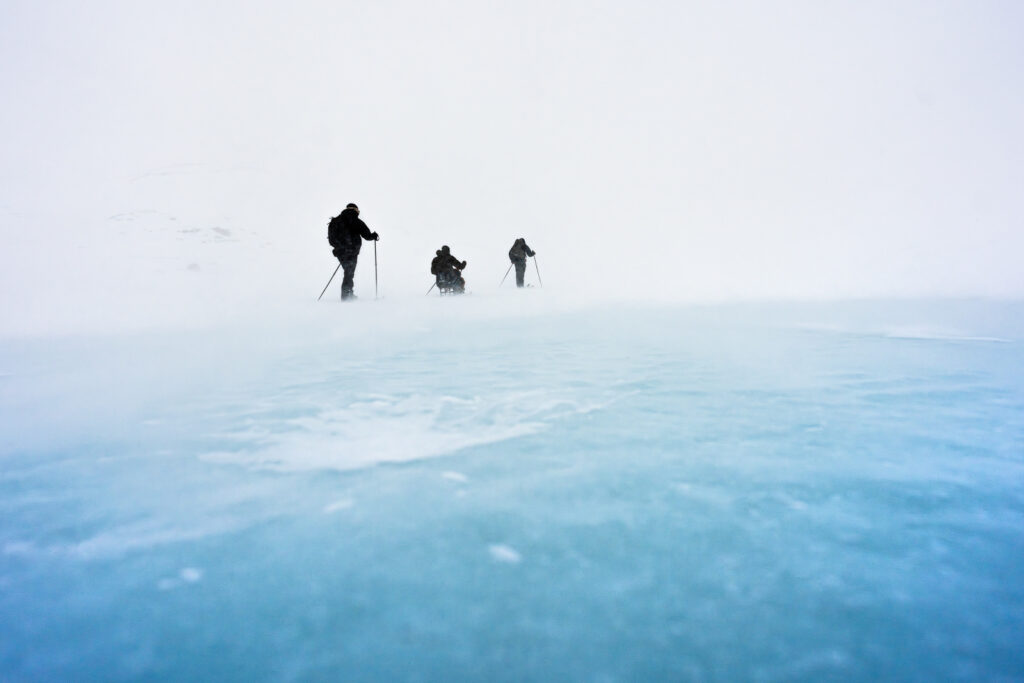 Throughout the expedition, the team endured temperatures approaching –45°C, navigating a relentless landscape of steep inclines, hostile terrain, and the constant risk of frostbite and hypothermia. Midway through the journey, Darren was diagnosed with a urinary tract infection – an ever-present and potentially serious risk for someone living with a spinal cord injury. Undeterred, the team pressed on, navigating by compass across a featureless horizon and battling vast fields of sastrugi – irregular, wind-carved ridges that reduced progress to just 10 kilometres per day.